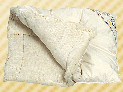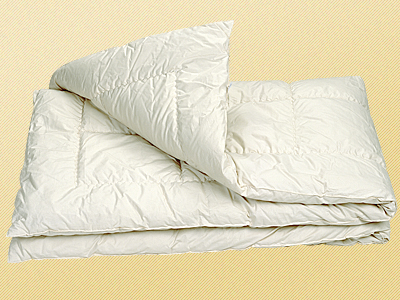 Bei dieser Steppdecke wird die Schafwolle zusammen mit dem Baumwoll-Bezug durchgehend versteppt.