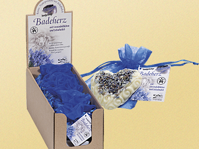 Inhalt: je 1 Badeherz Lavendel, 35 g
