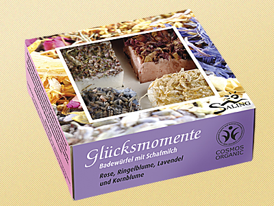 Geschenkverpackung „Glücksmomente“, Badewürfel mit Schafmilch