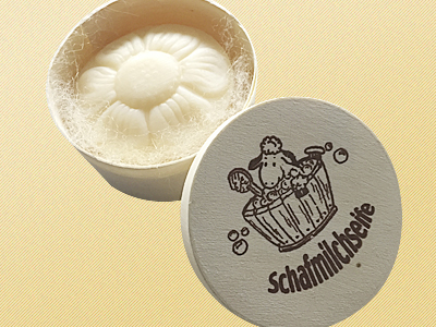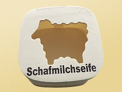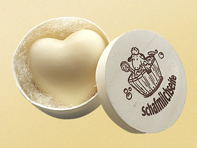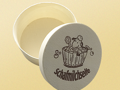 Holzdose mit Schafmilchseife Schaf weiß gefüllt