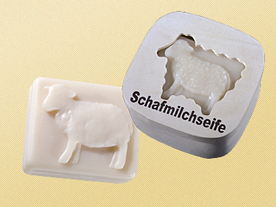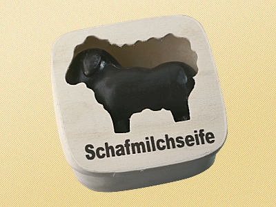 Holzdose mit Schafmilchseife Lamm eckig gefüllt